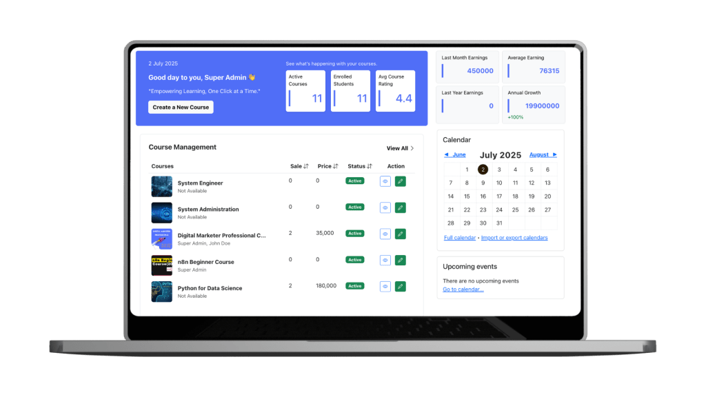 ✅ User-friendly admin panel – manage courses, users, content, and settings with ease